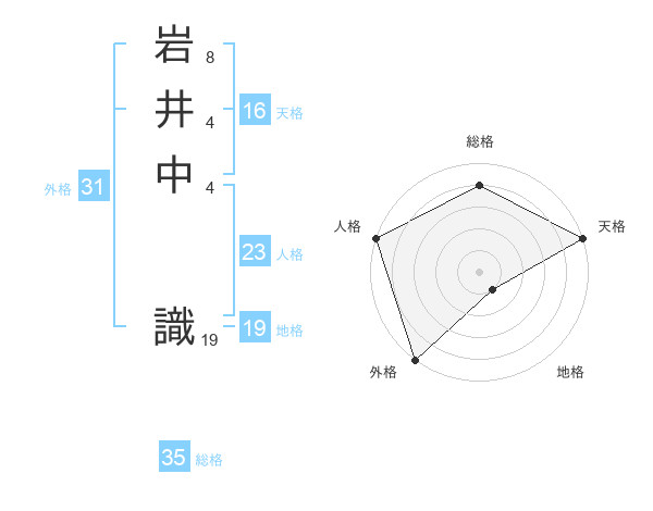 岩井中 識さんの地格は19画の1点!