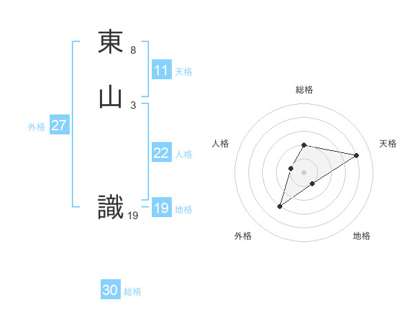 東山 識さんの総格は30画の2点!
