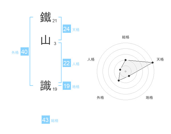 鐵山 識さんの天格は24画の5点!