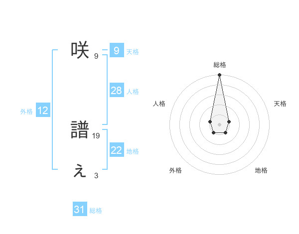 咲 譜ぇさんを姓名の画数から五運を鑑定