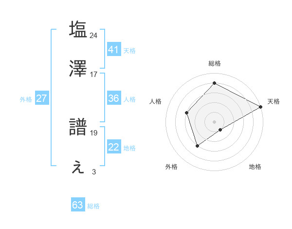 塩澤 譜ぇさんの総格は63画の4点!