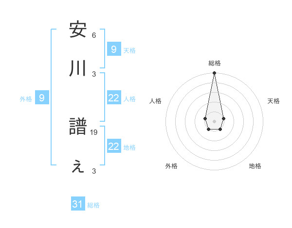 安川 譜ぇさんを姓名の画数から五運を鑑定