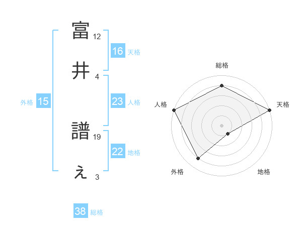 富井 譜ぇさんの総格は38画の4点!