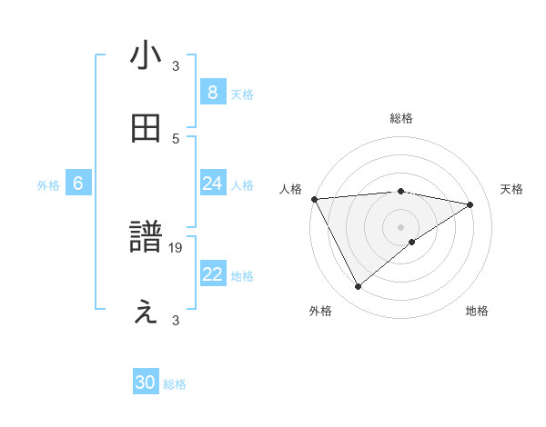 小田 譜ぇさんを姓名の画数から五運を鑑定