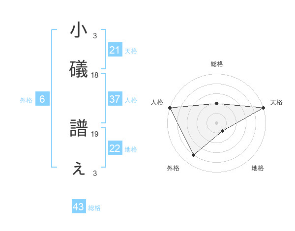 小礒 譜ぇさんを姓名の画数から五運を鑑定