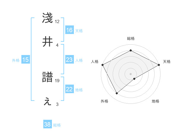 淺井 譜ぇさんを姓名の画数から五運を鑑定