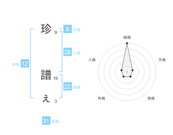 珍 譜ぇさんの総格は31画の5点!