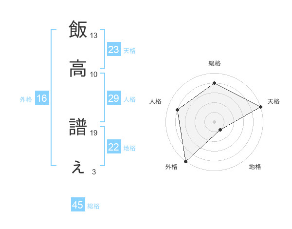 飯高 譜ぇさんを姓名の画数から五運を鑑定