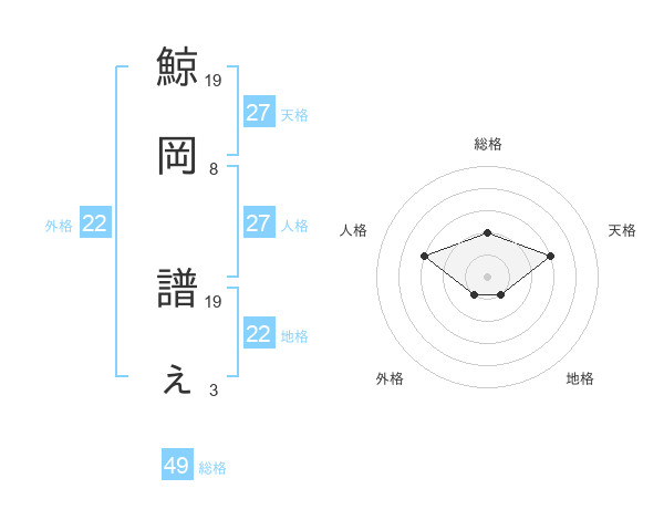 鯨岡 譜ぇさんを姓名の画数から五運を鑑定