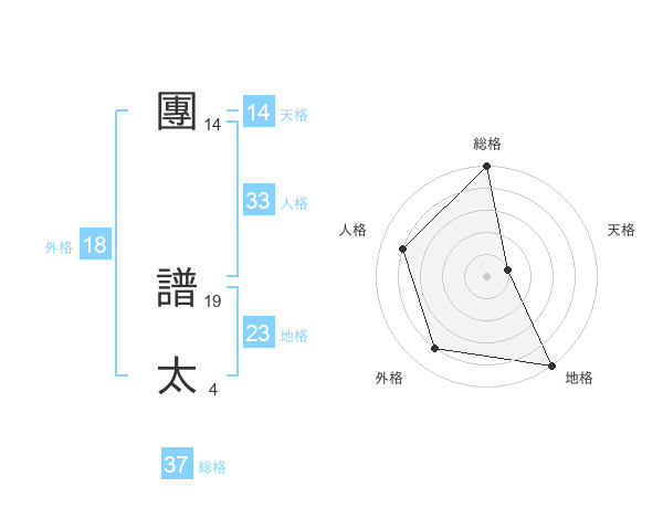 團 譜太さんの地格は23画の5点!