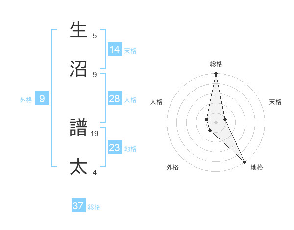 生沼 譜太さんを姓名の画数から五運を鑑定