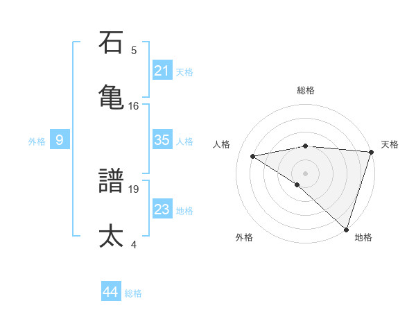 石亀 譜太さんの天格は21画の5点!