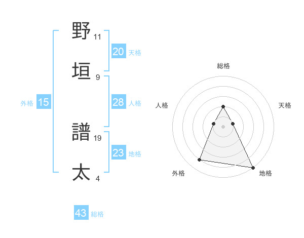 野垣 譜太さんを姓名の画数から五運を鑑定