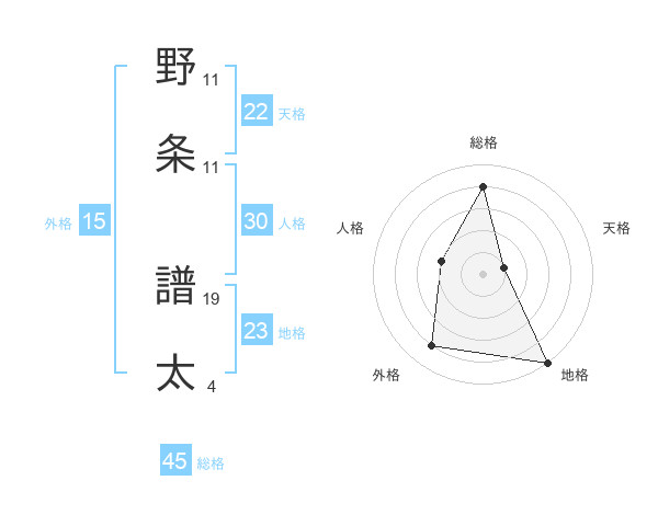 野条 譜太さんの総格は45画の4点!