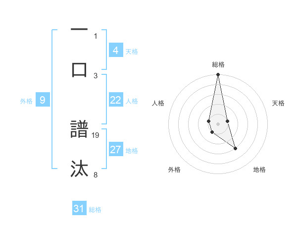 一口 譜汰さんの総格は31画の5点!