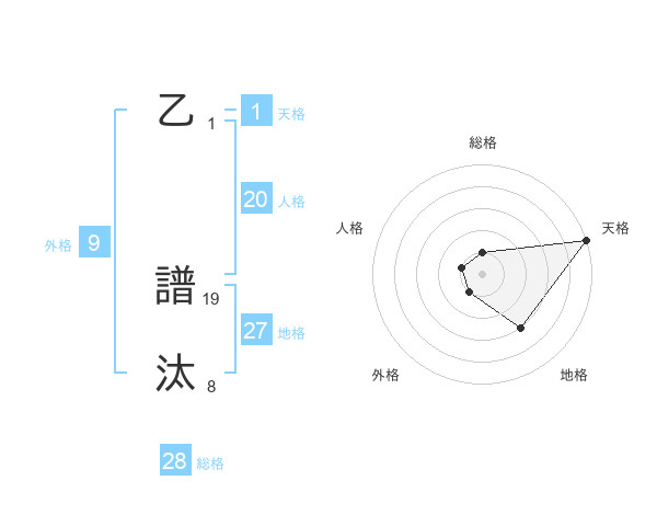 乙 譜汰さんの総格は28画の1点!