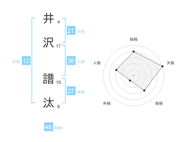 井沢 譜汰さんを姓名の画数から五運を鑑定