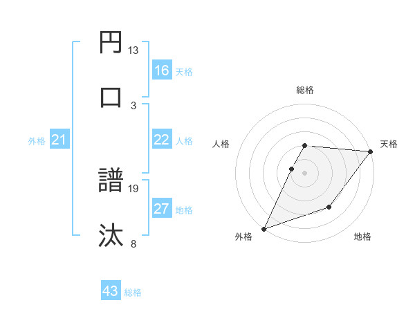 円口 譜汰さんを姓名の画数から五運を鑑定