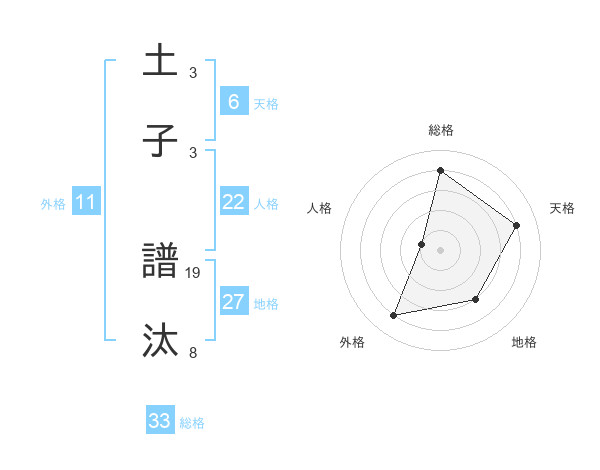 土子 譜汰さんの総格は33画の4点!