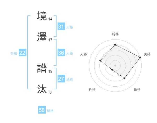 境澤 譜汰さんの総格は58画の4点!