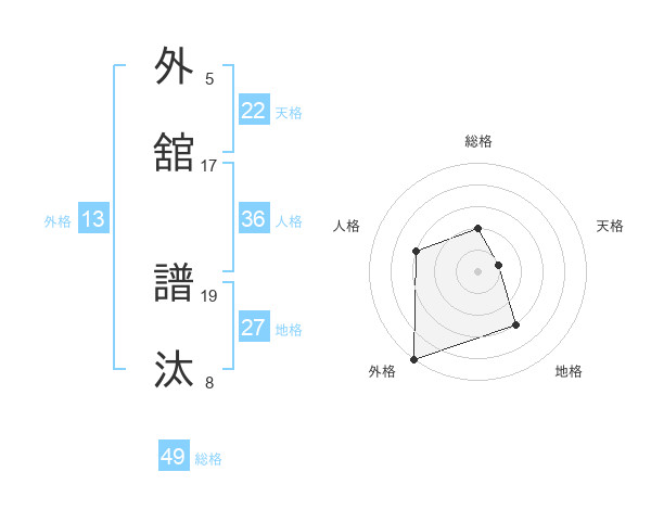外舘 譜汰さんを姓名の画数から五運を鑑定
