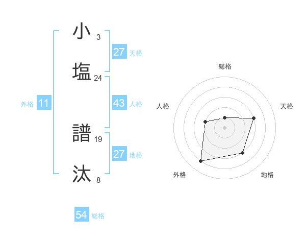小塩 譜汰さんを姓名の画数から五運を鑑定