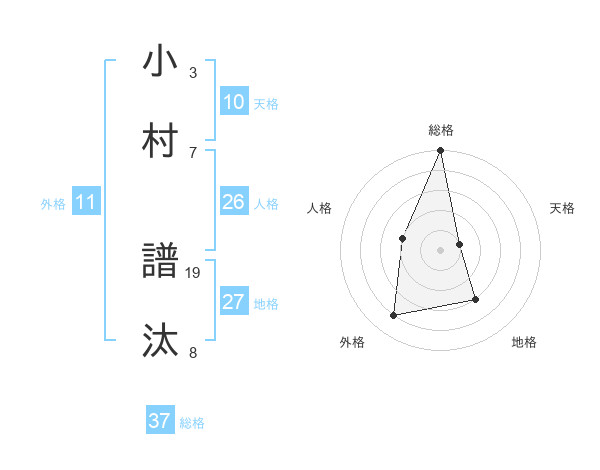 小村 譜汰さんを姓名の画数から五運を鑑定