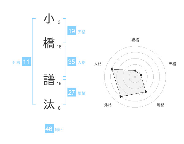 小橋 譜汰さんを姓名の画数から五運を鑑定