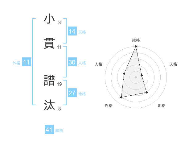 小貫 譜汰さんの総格は41画の5点!