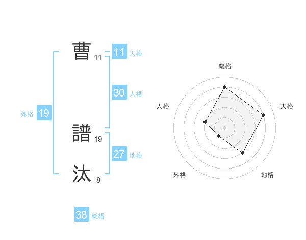 曹 譜汰さんを姓名の画数から五運を鑑定