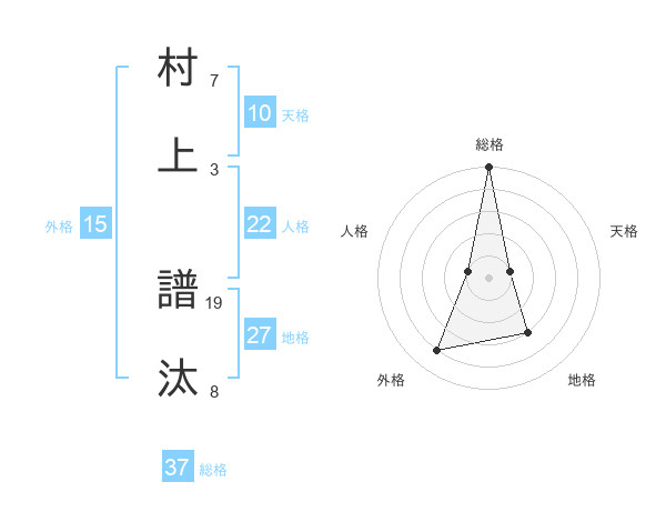 村上 譜汰さんを姓名の画数から五運を鑑定