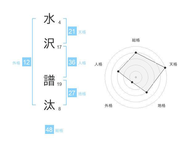 水沢 譜汰さんを姓名の画数から五運を鑑定