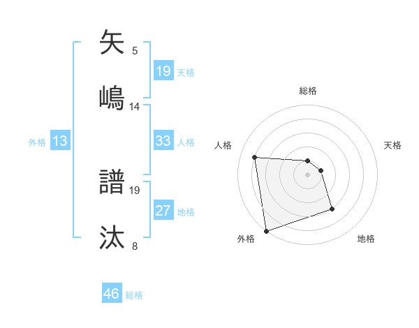 矢嶋 譜汰さんを姓名の画数から五運を鑑定
