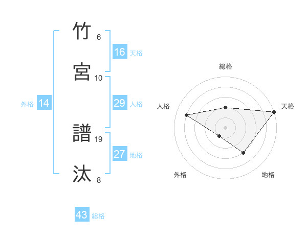 竹宮 譜汰さんの総格は43画の2点!