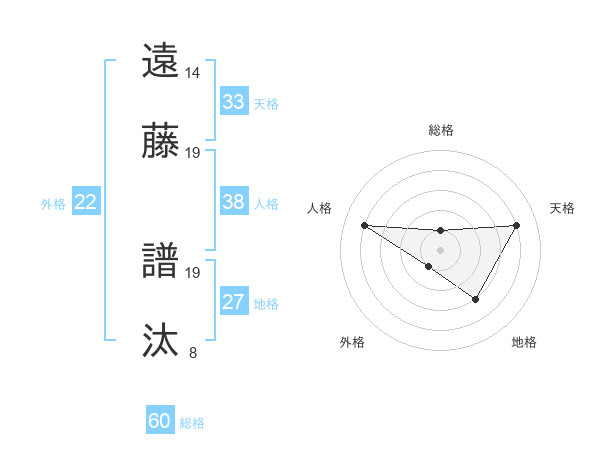 遠藤 譜汰さんの外格は22画の1点!