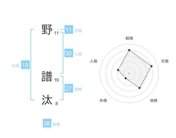 野 譜汰さんの総格は38画の4点!