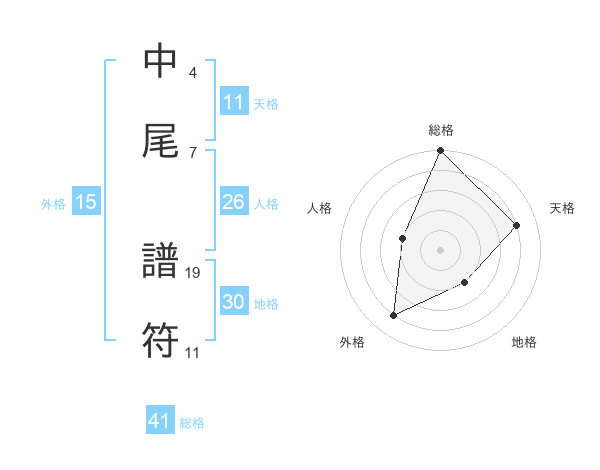 中尾 譜符さんの外格は15画の4点!