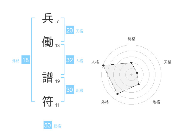 兵働 譜符さんを姓名の画数から五運を鑑定