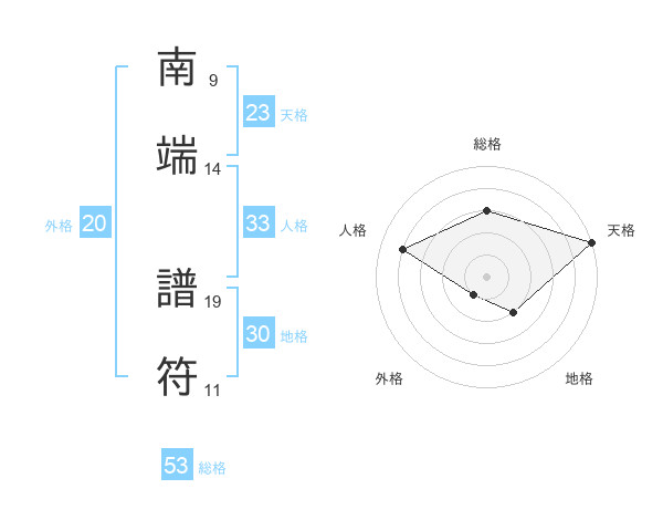 南端 譜符さんの総格は53画の3点!