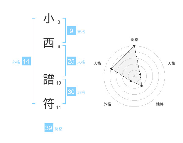 小西 譜符さんの総格は39画の5点!