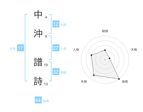 中沖 譜詩さんを姓名の画数から五運を鑑定