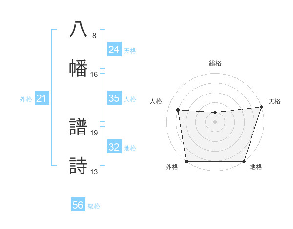 八幡 譜詩さんを姓名の画数から五運を鑑定