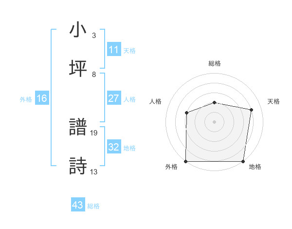 小坪 譜詩さんを姓名の画数から五運を鑑定