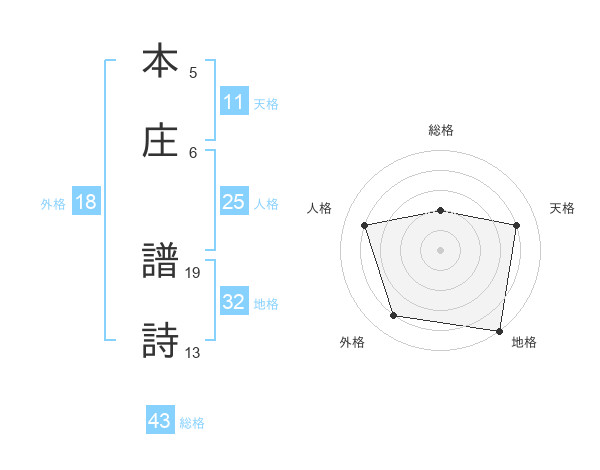 本庄 譜詩さんの地格は32画の5点!