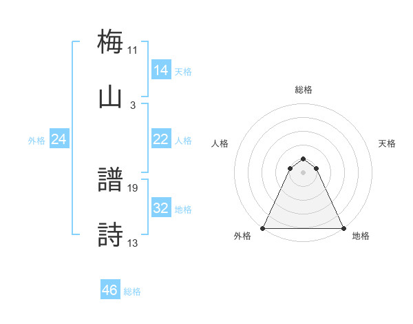 梅山 譜詩さんの総格は46画の1点!