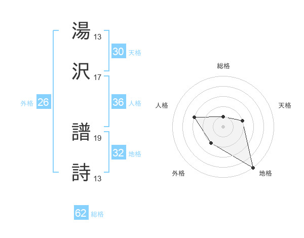 湯沢 譜詩さんの天格は30画の2点!