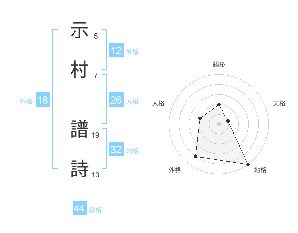 示村 譜詩さんを姓名の画数から五運を鑑定