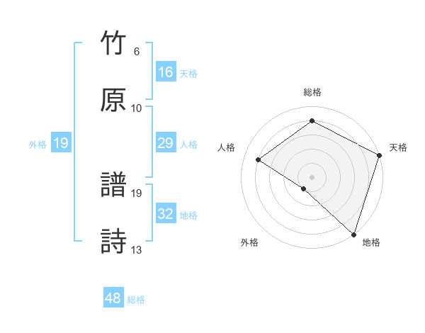 竹原 譜詩さんの天格は16画の5点!