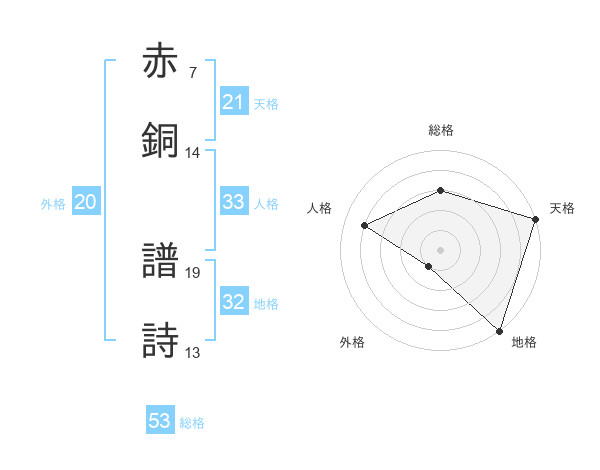 赤銅 譜詩さんを姓名の画数から五運を鑑定