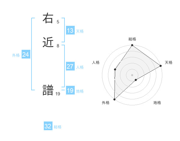 右近 譜さんの天格は13画の5点!